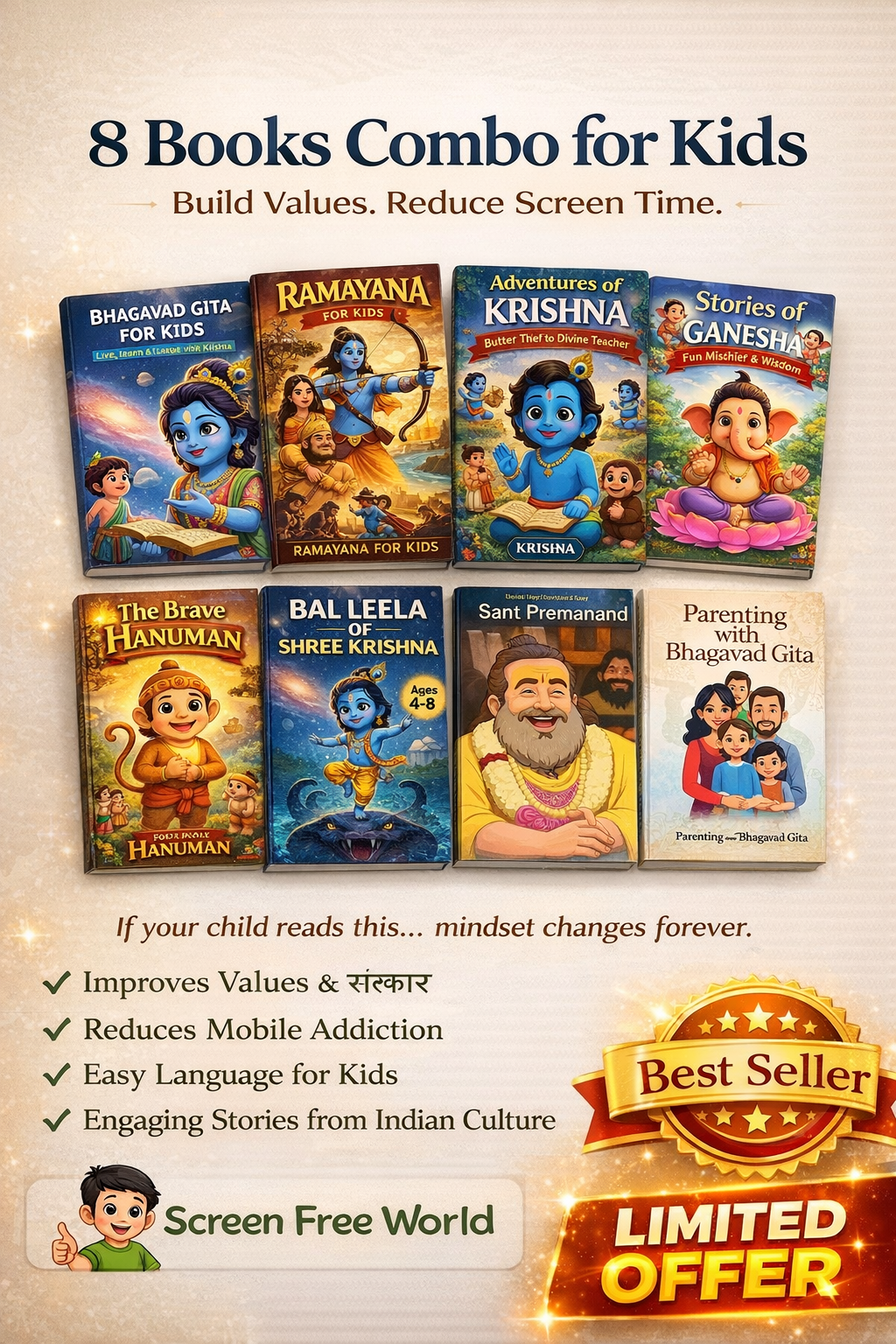 1️⃣ Bhagavad Gita for Kids (Hindi + English)